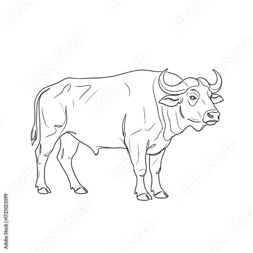 © Elena, Fototapeta premium Outline illustration of a standing buffalo in profile view on a transparent background