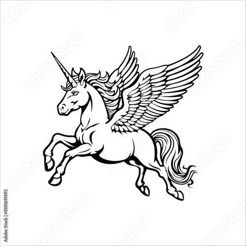 © aliaross, Obraz premium outline illustration of unicorn. Coloring page