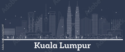 Obraz premium Outline Kuala Lumpur Malaysia City Skyline with White Buildings.