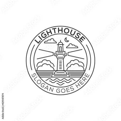 Obraz premium Outline Light house logo design, lighthouse icon vector illustration line art template