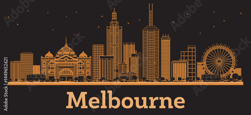 Obraz premium Outline Melbourne Australia City Skyline with orange Buildings. Business Travel and Concept with Modern Architecture. Melbourne Cityscape with Landmarks.