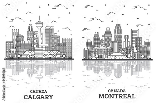 Naklejka premium Outline Montreal and Calgary Canada City Skyline Set.