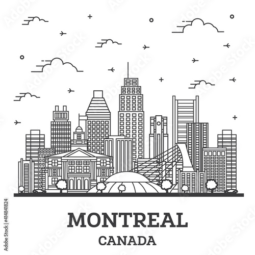 Naklejka premium Outline Montreal Canada City Skyline with Modern Buildings Isolated on White.