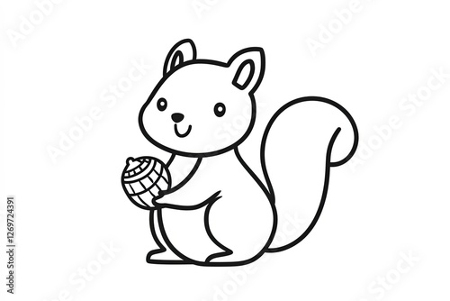 Naklejka premium Outline of a cheerful squirrel holding an acorn.