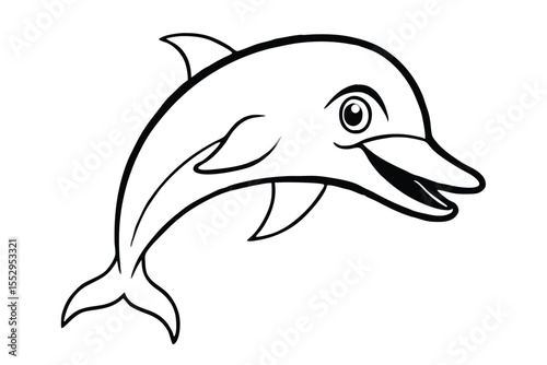 © Dipta, Fototapeta premium Outline of a smiling dolphin showcases its dorsal fin, flippers, and charming eye
