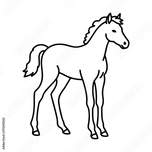 © Ольга Бошарова, Obraz premium Outline of a standing horse with a tail and mane