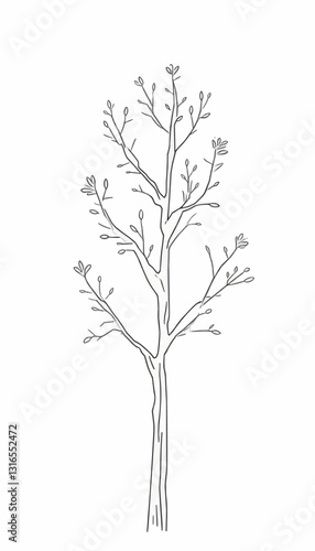 © Оксана Матросова Мат, Fototapeta premium Outline of a tree with budding branches for coloring and copy space