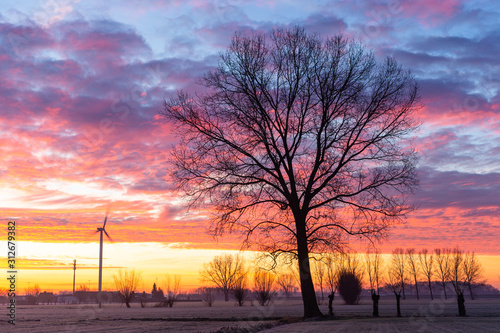© whitehorse1961, Obraz premium outline of tree in front of colourfull sunrise