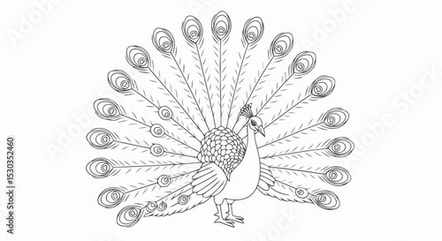 © Lentera, Obraz premium Outline peacock with spread tail feathers