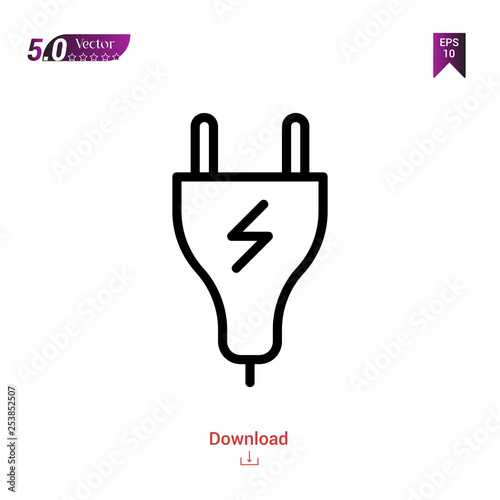 Obraz premium Outline plug icon isolated on white background. Popular icons for 2019 year....