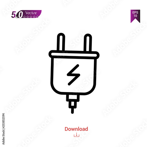 Obraz premium Outline plug icon isolated on white background. Popular icons for 2019 year....