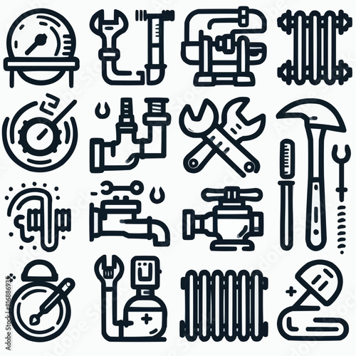 Fototapeta premium outline plumbing heating set icon silhouette vector illustration white...
