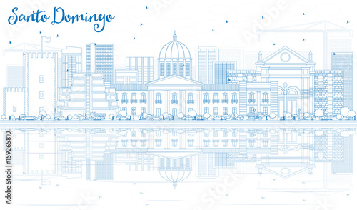 Fototapeta premium Outline Santo Domingo Skyline with Blue Buildings and Reflections.