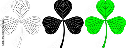 © Sutana, Obraz premium outline silhouette Shamrock leaf icon set