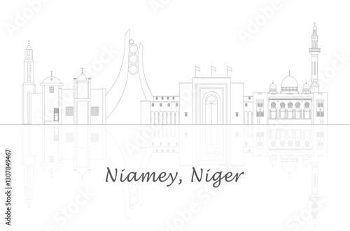 Fototapeta premium Outline Skyline panorama of city of Niamey, Niger - vector illustration