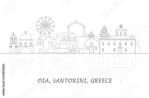 Naklejka premium Outline Skyline panorama of village of Oia, Santorini, Cyclades Islands,...