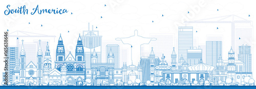 Fototapeta premium Outline South America Skyline with Famous Landmarks.