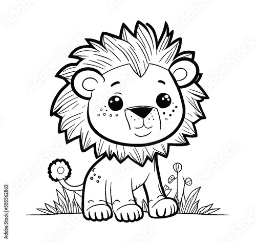 Obraz premium Outline style, coloring book, lion cub, little lion cub for children's coloring book.