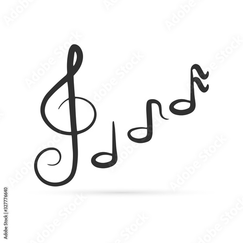 Fototapeta premium Outline treble clef with note icon isolated on white. Music doodle, sketch....