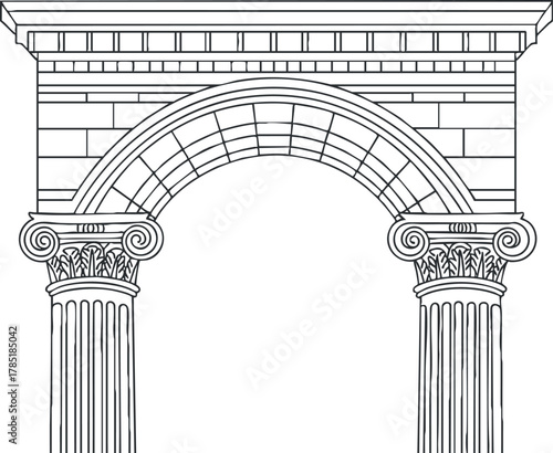 Obraz premium Outline vector illustration of a classic architectural arch with columns, suitable for design projects and historical themes