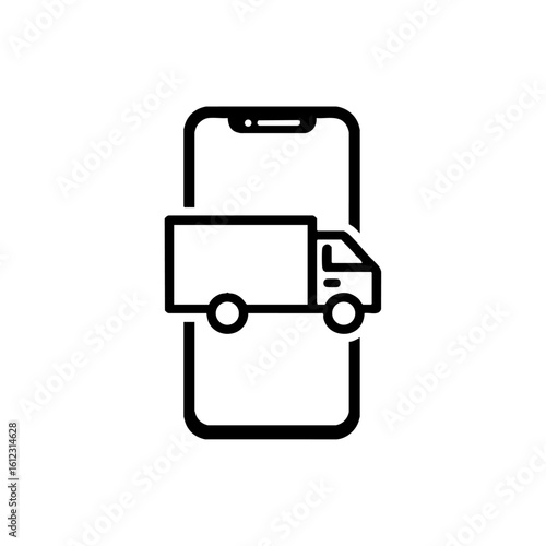 Obraz premium Outline vector of a truck emerging from a smartphone screen, symbolizing...