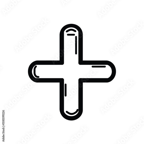 Obraz premium Outlined black plus symbol has rounded edges and a white inner shadow on white