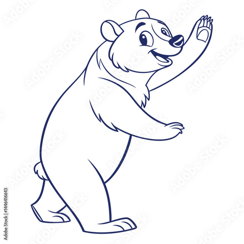 Fototapeta premium Outlined Cartoon Bear Waving Hand, Standing Upright, Cute, Happy, Illustration, Lineart