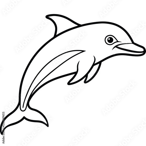 Fototapeta premium Outlined cartoon dolphin jumping, perfect for coloring pages.