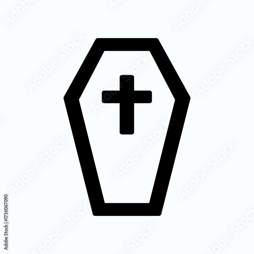 © Ronin, Obraz premium Outlined Coffin Icon with Christian Cross on a White Background