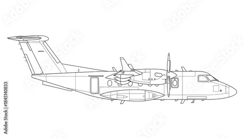 © Akus, Obraz premium Outlined Detailed Airplane Illustration on White Background