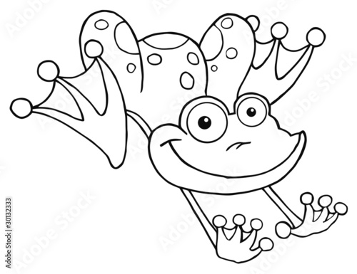 © HitToon.com, Obraz premium Outlined Frog Hopping Frog