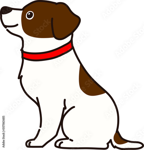 Fototapeta premium Outlined Jack Russell Terrier sitting side view with red collar