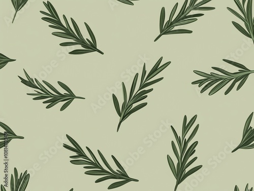 Naklejka premium outlined rosemary sprigs pattern in dark green colour flat geometry shapes on...