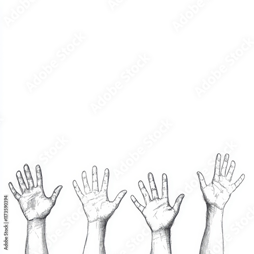 Fototapeta premium Outstretched Hands in Black and White Line Drawing