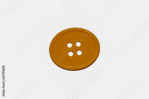© ola_photo_art, Fototapeta premium oval round yellow sewing button four holes toy