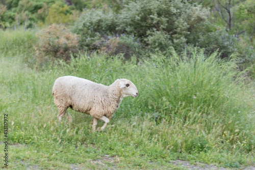 © JOSE ANTONIO, Obraz premium ovejas con el pelaje de invierno sobre la hierva de primavera