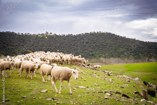© delma, Fototapeta premium Ovejas y Olivar