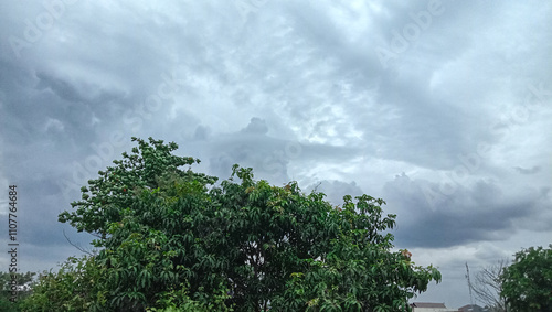 © FalOpang, Fototapeta premium Overcast clouds that dot the afternoon sky in tropical climates.