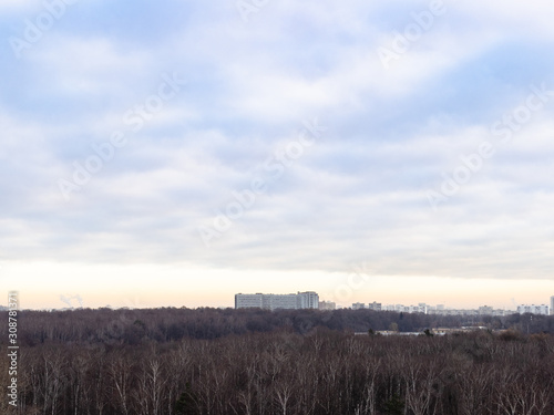 Obraz premium overcast sky over city park in autumn morning