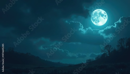 Fototapeta premium Overcast sky with a full moon casting shadows, eerie atmosphere, mystical ambiance