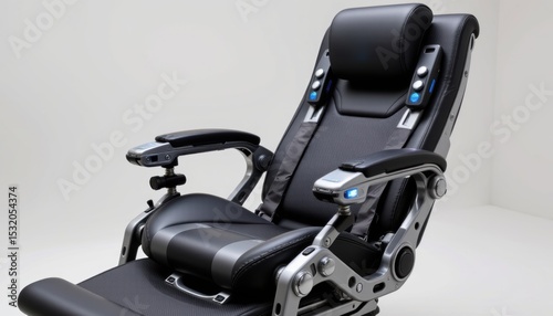 Naklejka premium Overengineering concept, High-tech ergonomic massage chair with sleek design.