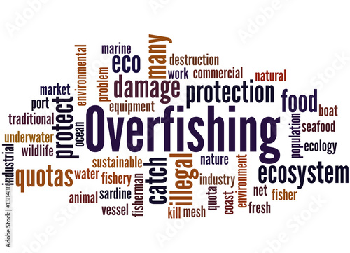 © kalpis, Obraz premium Overfishing, word cloud concept 2