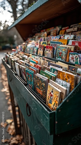 © Adama, Naklejka premium Overflowing book box vintage books collection