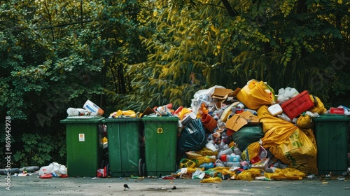 Fototapeta premium Overflowing Garbage Bins
