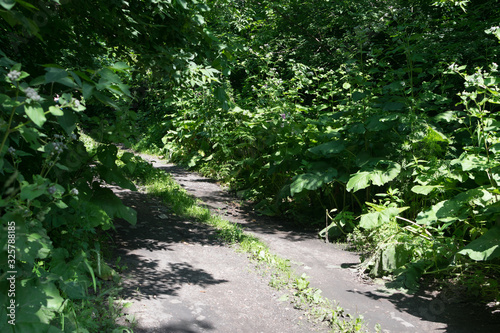 Fototapeta premium Overgrown country road in dense forest, green tunnel