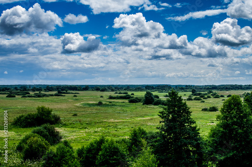 © Ivan, Obraz premium Overgrown meadow with trees. Abandoned meadow near the river