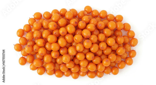 © ray, Fototapeta premium Overhead close up view of freshly picked orange sea buckthorn berries