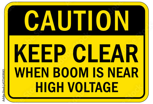 © middlenoodle, Obraz premium Overhead crane hazard sign and labels keep clear when boom is near high voltage