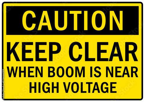 © Pog, Obraz premium Overhead crane hazard sign and labels keep clear when boom is near high voltage