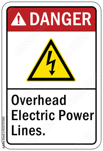 Fototapeta premium Overhead power lines sign and labels